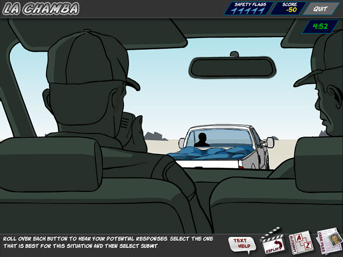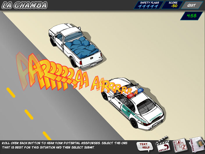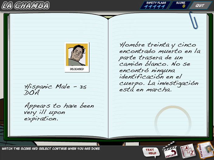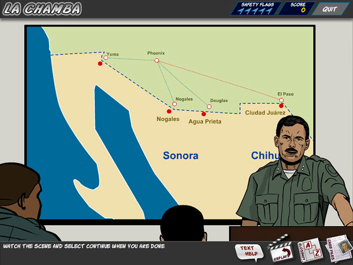 U.S. Customs and Border Protection needed an better way to teach Spanish immersion for the CBP agents that protect our southern borders. Traditional methods of classes and testing had a pass rate of 32%. With this interactive crime solving game the rate went up to 84% . Responsible for creating the comic book style for this course, I created many illustrations and animations that included lip syncing characters.