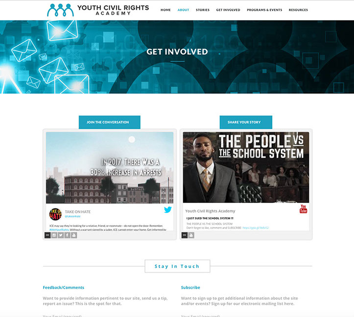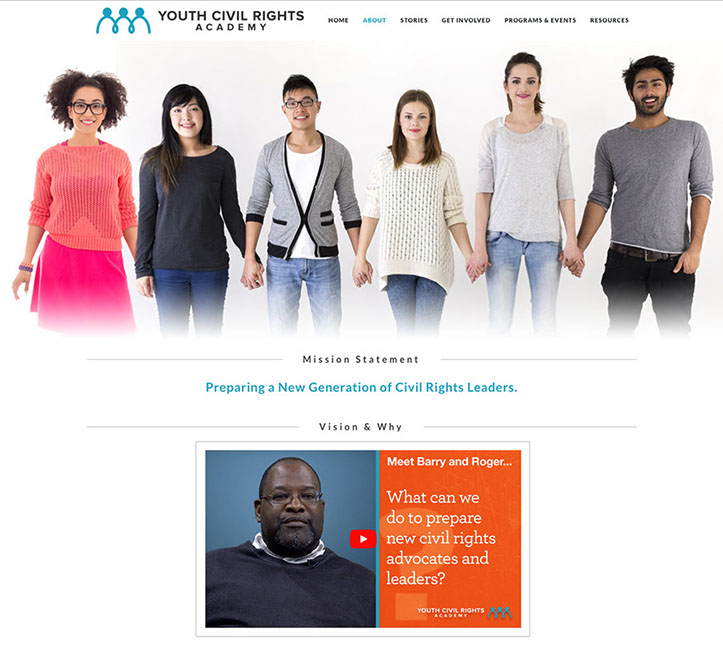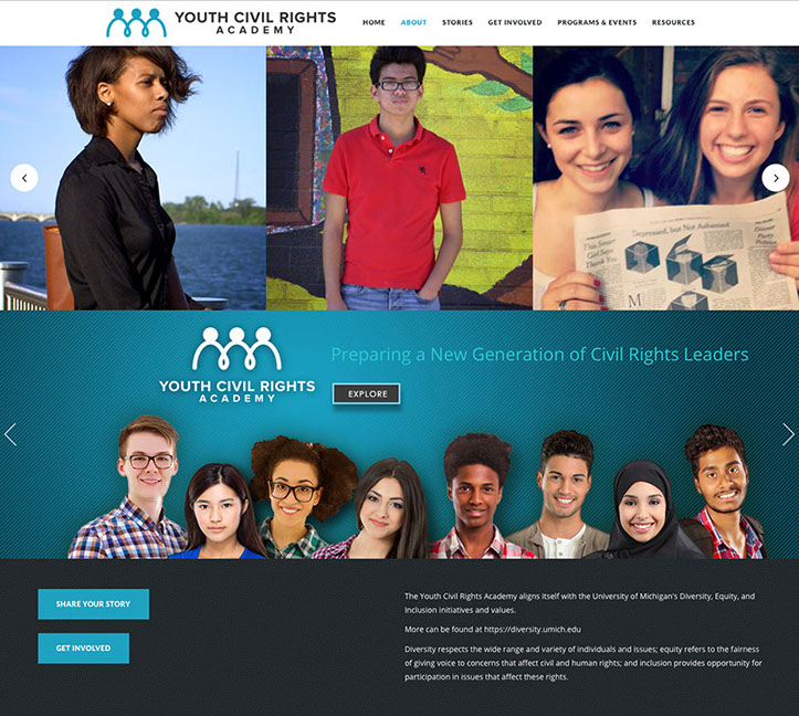 Youth Civil Rights Academy is an organization that was created in partnership with the University of Michigan's School of Sociology and The University of Michigan Academic Innovations Department. Contracted by UM-IA was brought in to work with the subject matter expert for YCR to create a website built in a maintainable,by the client, CMS (Wordpress). I was responsible for creating all the graphics, laying out the website and formatting the content, working in conjunction with the UM-IA dept. in keeping the look and feel they were establishing for the video content.